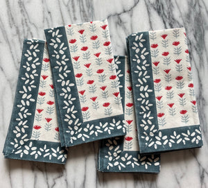 Our dinner napkins are hand block printed by Master Artisans in India and made from 100%Cotton.