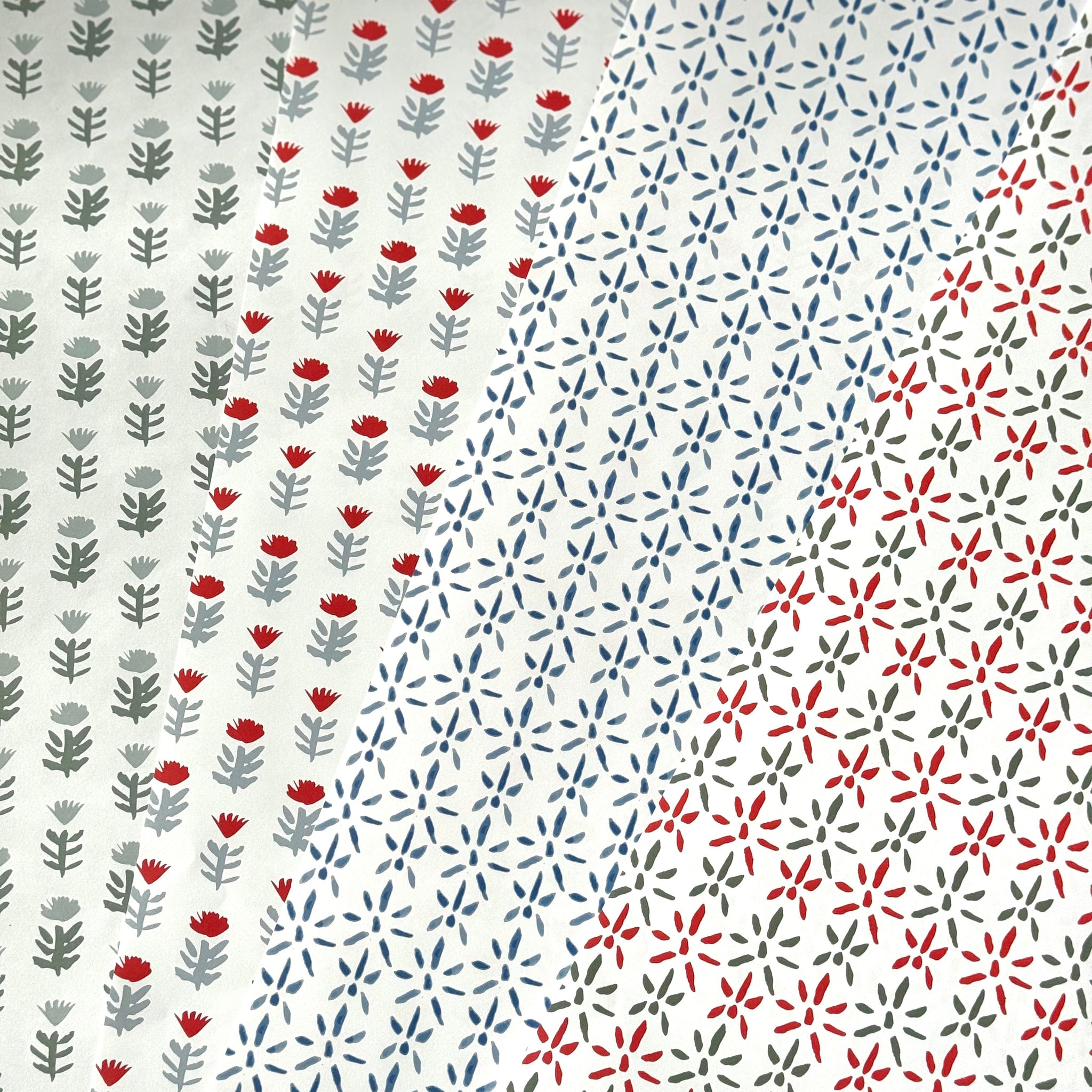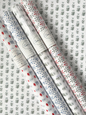 Our holiday star gift wrap was translated from a watercolor painting. Use around the holidays, or year round. Available in red and green as well.