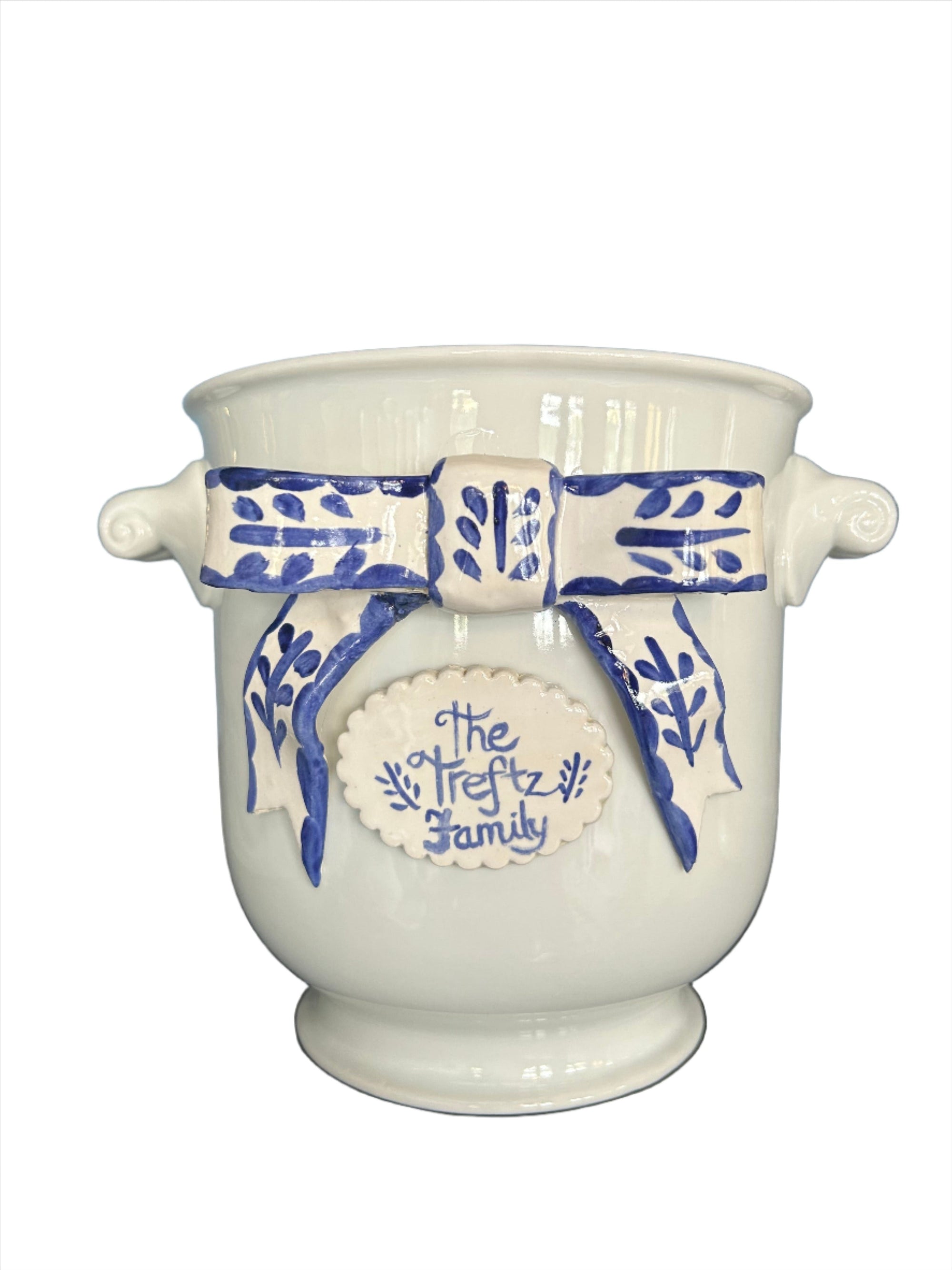 $44.00Cache Pot with Blue Bow | Tricia Lowenfield