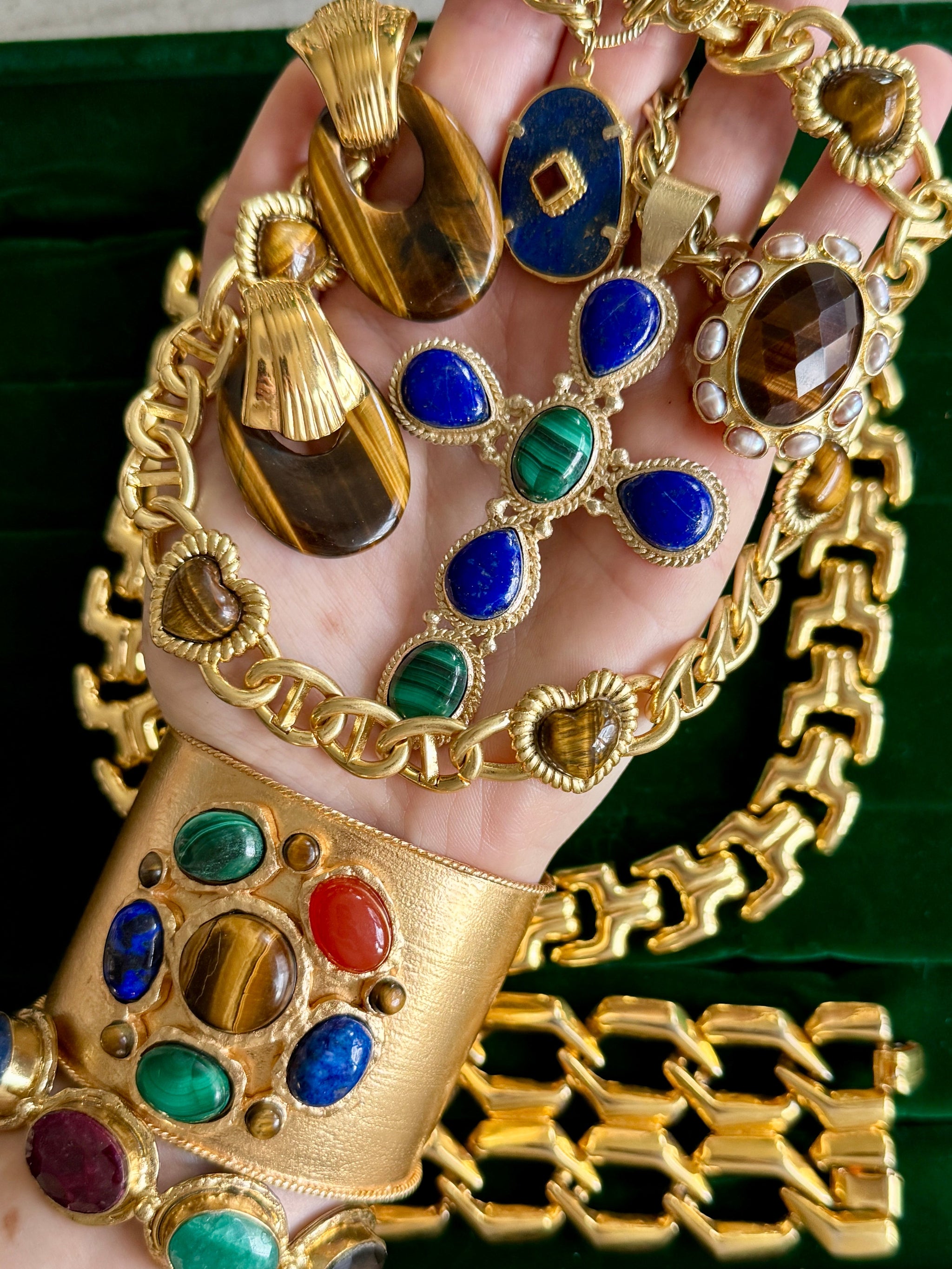 French Tiger's Eye Malachite Gold Cuff