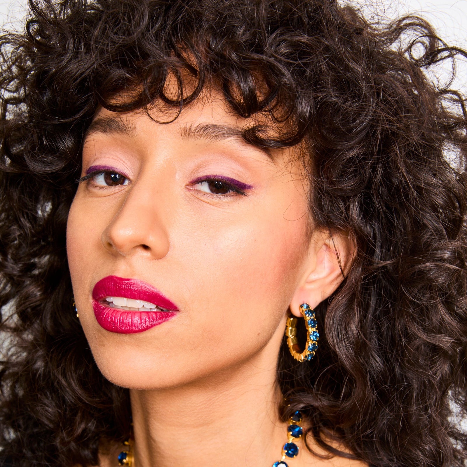 Dark Blue Crystal Hoop Earrings | Kimono Dragon