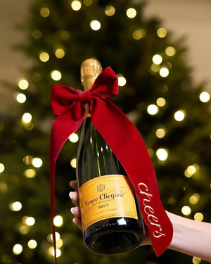 Skip with silver bag and wrap your bottle with a velvet bow for a reusable, charming touch! Each wine bow is embroidered with a fun celebratory saying.