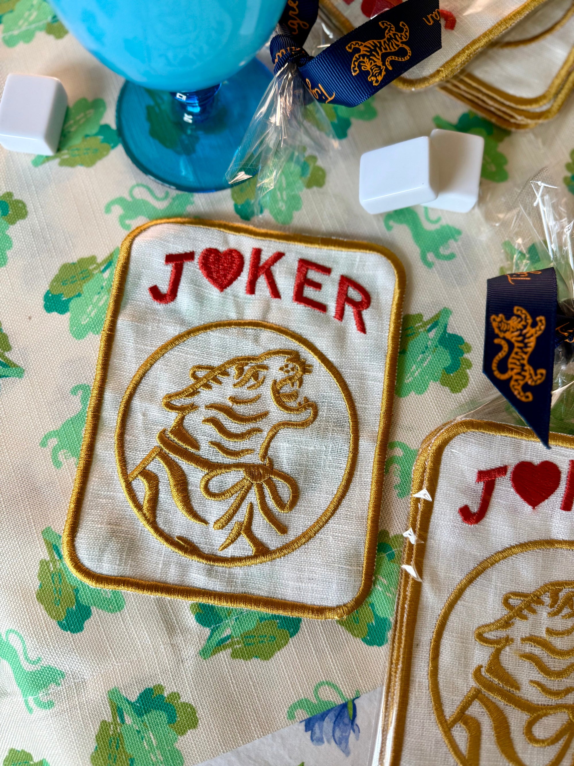 $69.00Embroidered Linen Cocktail Napkins, Tiger Jokers
