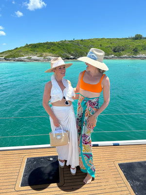 Our elegant take on the boho "lifeguard-style" surfer hat is woven with all-natural palm tree leaves.