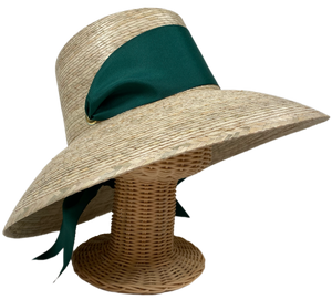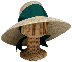 This hat ships with 3 inch tall/wide dark green grosgrain ribbon, that is heat cut at 40 inches long.