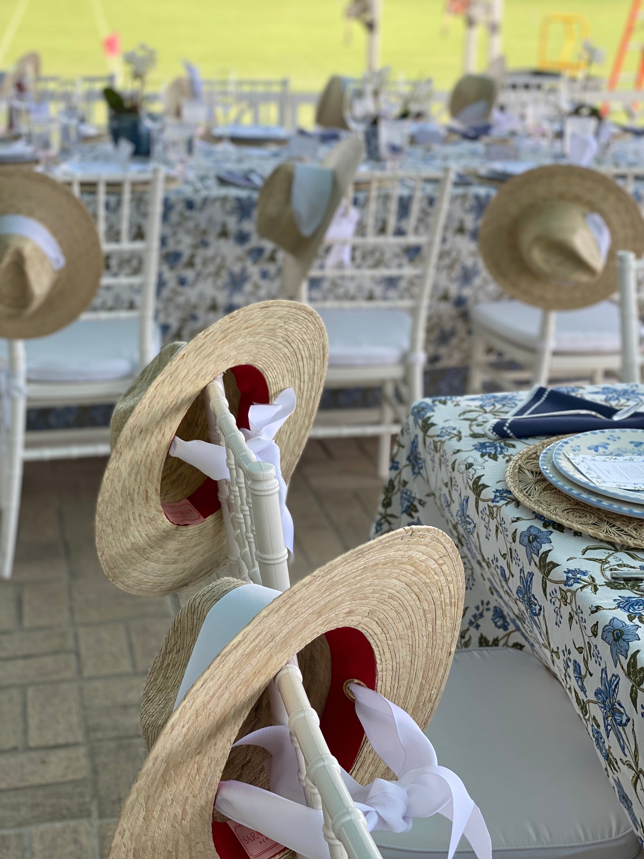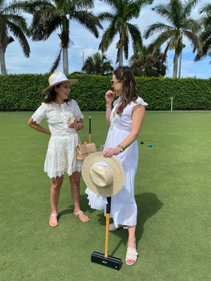 Woven with palm tree leaves, The Zinnia features our signature brass grommets designed for interchangeable ribbons.