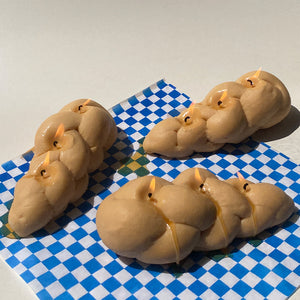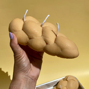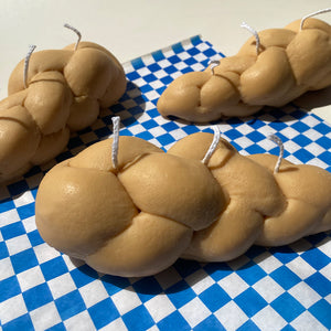 The challahdad bread candle by @scandles___ x @challahdad is a replica of the mini-mensch challah.